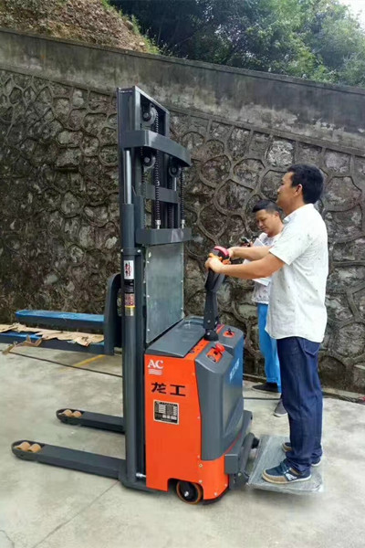 1、龍工電動(dòng)托盤(pán)堆高車,電動(dòng)堆高車前有底腿,主要是為了平衡和支撐,適合單面托盤(pán)或不用托