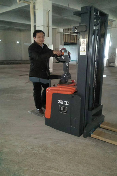 4龍工前移式電動(dòng)堆高車,此款堆高車基本與平衡重式電動(dòng)堆高車類似,無(wú)前腿有配重,不同前移式