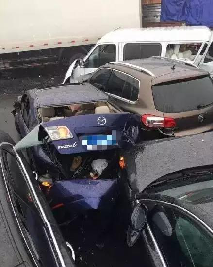 “我們的車速不快,大概80碼,但還是剎不住,雨天路滑視線也不是很好,一下頂了前面的車上,后面的車也是同樣情況,短短幾分鐘幾十輛車全都撞在了一起,我們的車夾在幾十輛車的中間,基本殘廢了。”胡先生回憶,當(dāng)時所有人都懵了,回頭一看母親頭上全是血,已經(jīng)昏了過去,父親也喊脖子疼。