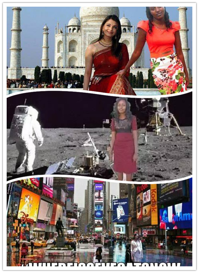 但這事并沒(méi)結(jié)束,因?yàn)樯w特已經(jīng)火了,網(wǎng)絡(luò)上一堆人開(kāi)始P她的圖,幫她去世界其他地方“旅游”!