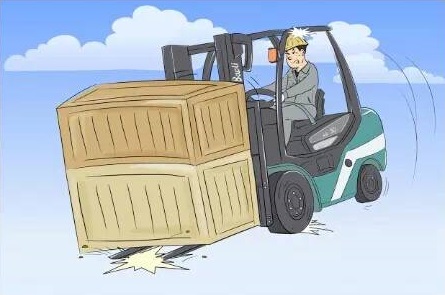 如果叉車開始傾斜,不要跳離叉車,雙手緊握方向盤,撐開雙腿,將身體傾向傾斜的反方向。始終坐在座椅上,避免被壓在叉車和地板之間。