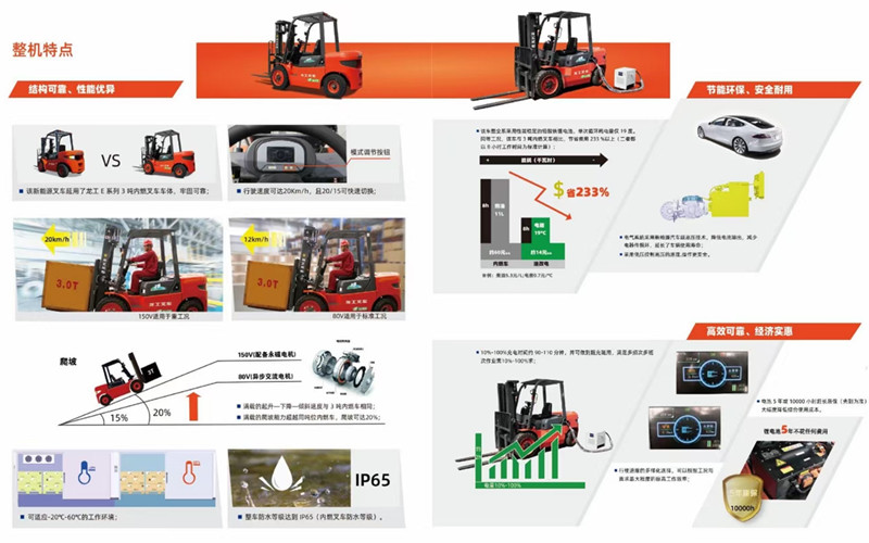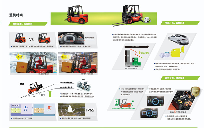 1、龍工油改電叉車(龍工鋰電叉車)綠色環(huán)保,零排放,低噪音,比柴油車環(huán)保性能和指標(biāo)均好;